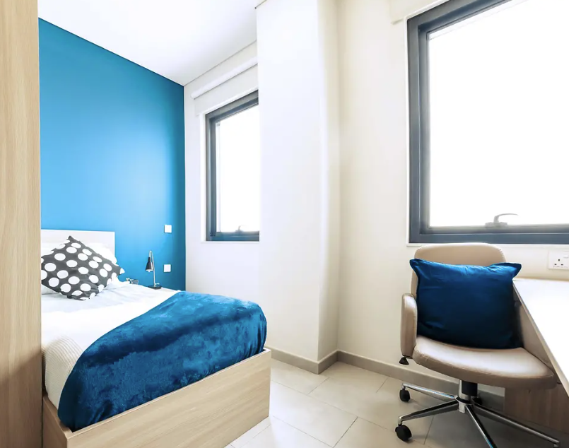 Gli studenti  avranno a disposizione confortevoli camere singole o doppie con bagno privato, connessione Wi-Fi veloce, aria condizionata e smart TV.