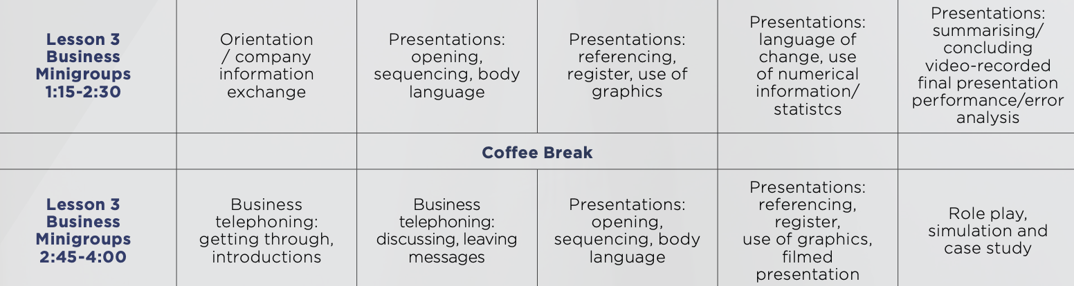 • Business Communication in mini-gruppi (max 4 studenti)